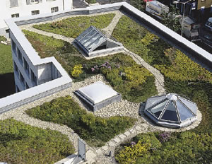 Ein zusätlicher Reiz des Flachdachs besteht in den vielfältigen Möglichkeiten, die gewonnene Dachfläche nutzen zu können. Durch fachgerechte Aufbauten können Dachflächen zu Dachterrassen, Verkehrswegen oder zu Grünanlagen umfunktioniert werden. Ob die Grünfläche auf dem Garagendach oder die großflächige Tiefgaragenabdichtung, die Nutzung von Dachflächen schafft neue Lebensräume, deren kreativer Gestaltung keine Grenzen gesetzt sind. Dachnutzung zahlt sich aus. Durch die Steigerung des Nutz-, Wohn- und Freizeitwertes steigt der Wert Ihrer Immobilie und damit der Mietzins. Die Mitgliedsbetriebe der Dachdecker-Innung sind Ihre kompetenten Ansprechpartner in allen Fragen zur wirtschaftlichen Dachflächennutzung. Dachbegrünung − eine gute Entscheidung Im modernen Städtebau sind begrünte Dächer markante Blickpunkte, die positive Aufmerksamkeit und Sympathien auf sich ziehen. So schaffen Sie Lebensqualität und geben der Stadt ein Stück Natur zurück. übrigens: Für ein Dachbegrünungsprojekt können Sie oftmals öffentliche Förderprogramme in Anspruch nehmen.